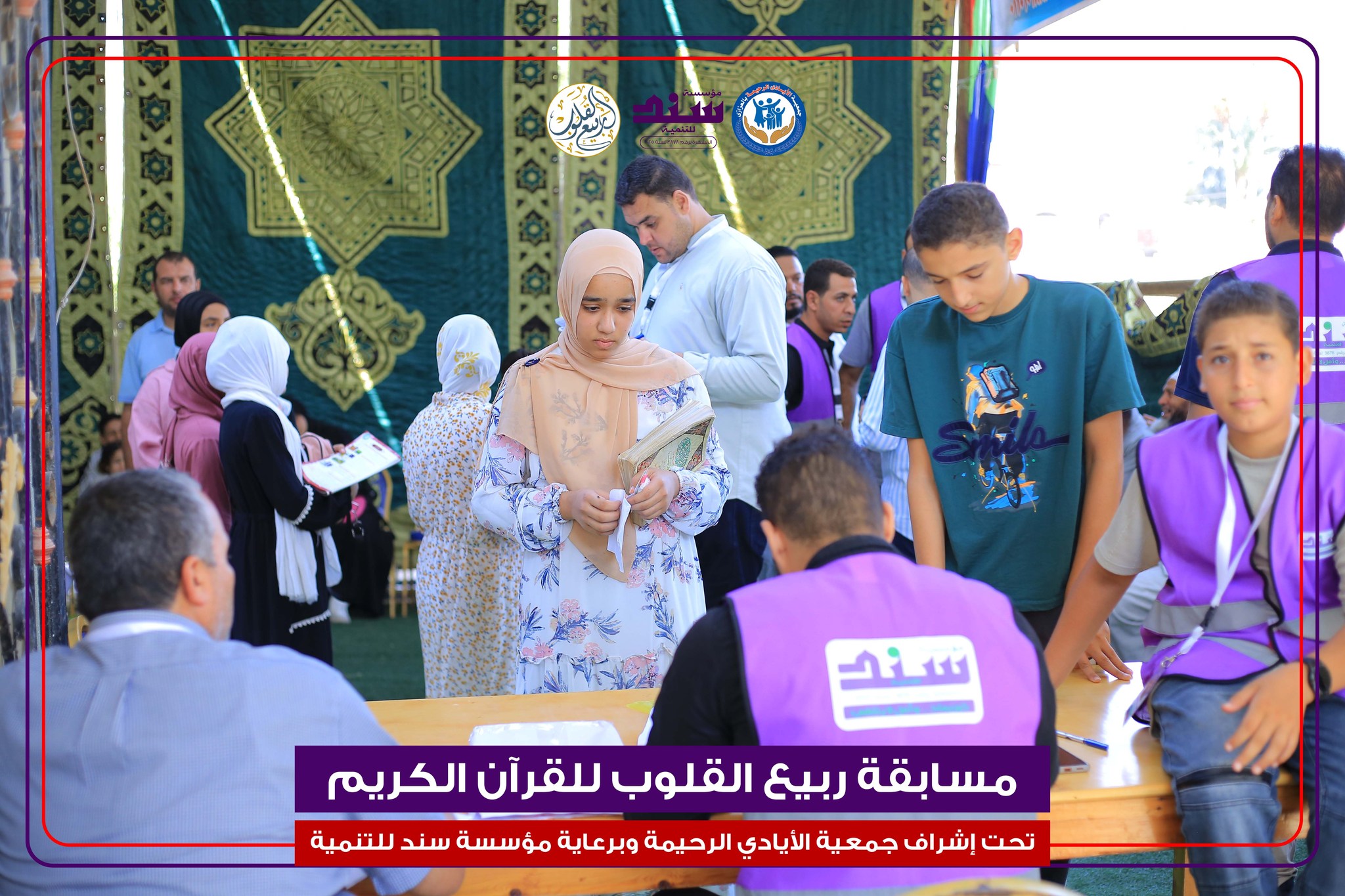 المسابقة تُقام تحت إشراف كامل من جمعية الأيادي الرحيمة ❤️، وبرعاية كريمة من مؤسسة سند للتنمية 💜، وبمتابعة لجنة مراجعة المصحف الشريف بالأزهر